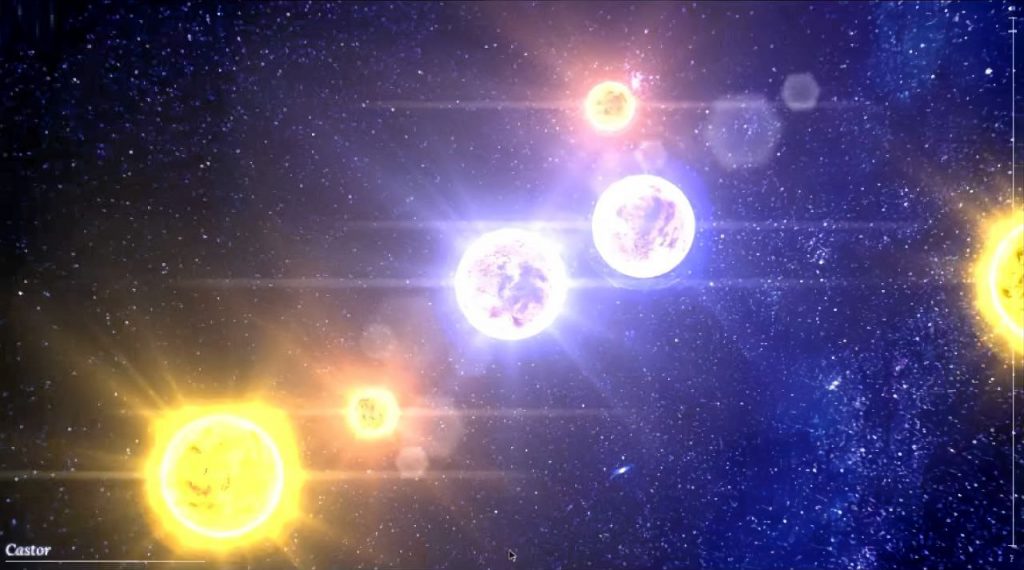ប្រព័ន្ធផ្កាយខាងលើត្រូវបានដាក់ឈ្មោះសម្គាល់ឲ្យថា TIC 168789840 (អាចហៅកាត់ថា CASTOR) ដោយត្រូវបានប្រទះឃើញតាមរយៈការប្រើប្រាស់ កែវយឺតអវកាសប្រមាញ់រកភពអេលៀន TESS របស់អង្គការ NASA។ ក្នុងចំណោមផ្កាយទាំង ០៦ នោះមាន ០៤ផ្កាយដែលធ្វើគោចរលើគន្លងនៅជិតគ្នាខ្លាំង ហើយប្រការនេះអាចធ្វើឲ្យភពទាំងឡាយដែលវិលជុំវិញពួកវាឆេះរលាយខ្ទេច (ប្រសិនបើមានវត្តមាន)។ ប៉ុន្តែផ្កាយ ០២ទៀត ហាក់រក្សាគម្លាតនៅឆ្ងាយល្មមពីគ្នា ដែលអាចអនុញ្ញាតឲ្យមានវត្តមានភព នៅគោចរជុំវិញពួកវាបាន។