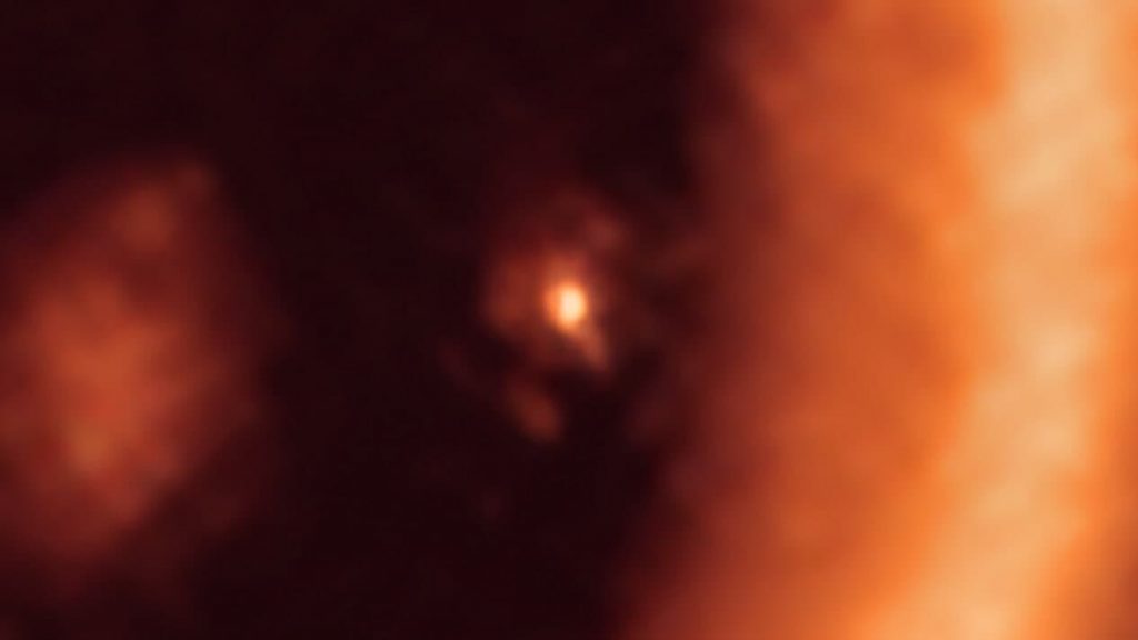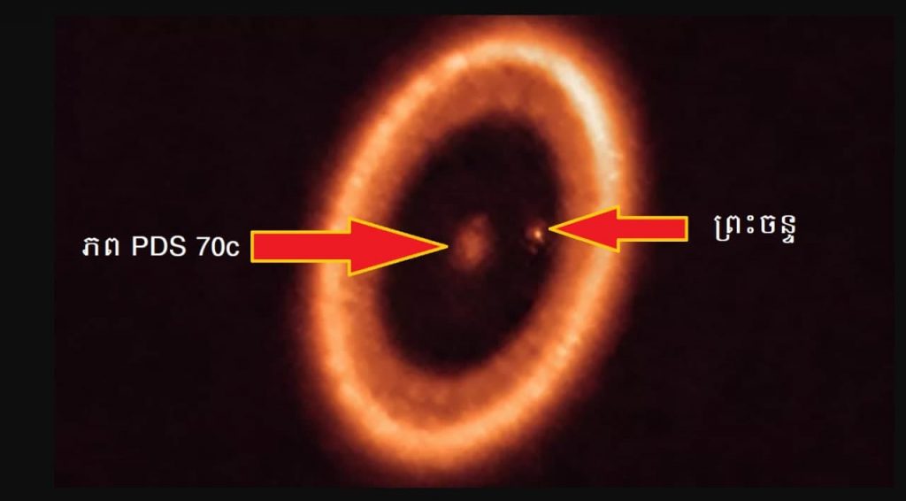 (អាមេរិកឡាទីន)៖ ក្រុមតារាវិទូអន្តរជាតិបានប្រើប្រាស់ តេឡេស្កូប ALMA ដ៏ធំនៅលើភពផែនដី និងអង្កេតឃើញព្រះចន្ទមួយដួង កំពុងតែកកើតនៅជុំវិញភពមេរបស់វា ដែលស្ថិតនៅចម្ងាយខ្ទង់ ៤០០ឆ្នាំពន្លឺពីភពផែនដីយើង។ ភពនៅប្រព័ន្ធផ្កាយផ្សេងនោះមានឈ្មោះថា PDS 70c ដែលកំពុងគោចរនៅជុំវិញផ្កាយ PDS 70។