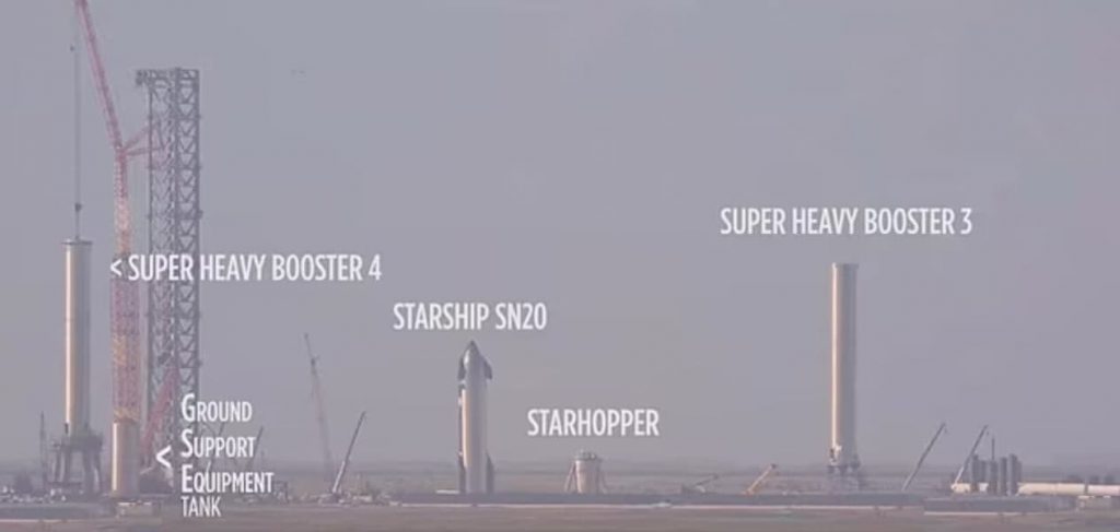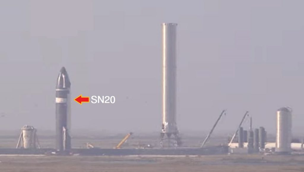 សម្រាប់ការធ្វើតេស្តលើកនេះ នៃគំរូនាវាអវកាស Starship ក៏នឹងមានការប្រើប្រាស់គ្រាប់រ៉ុក្កែតប៊ូស្ទឺរកម្ពស់ ៧០ម៉ែត្រផងដែរ ព្រោះយាន SN20 នឹងត្រូវបាញ់ឡើងដល់លំហអវកាស ហើយធ្វើដំណើរជុំវិញផែនដីមួយជុំ។