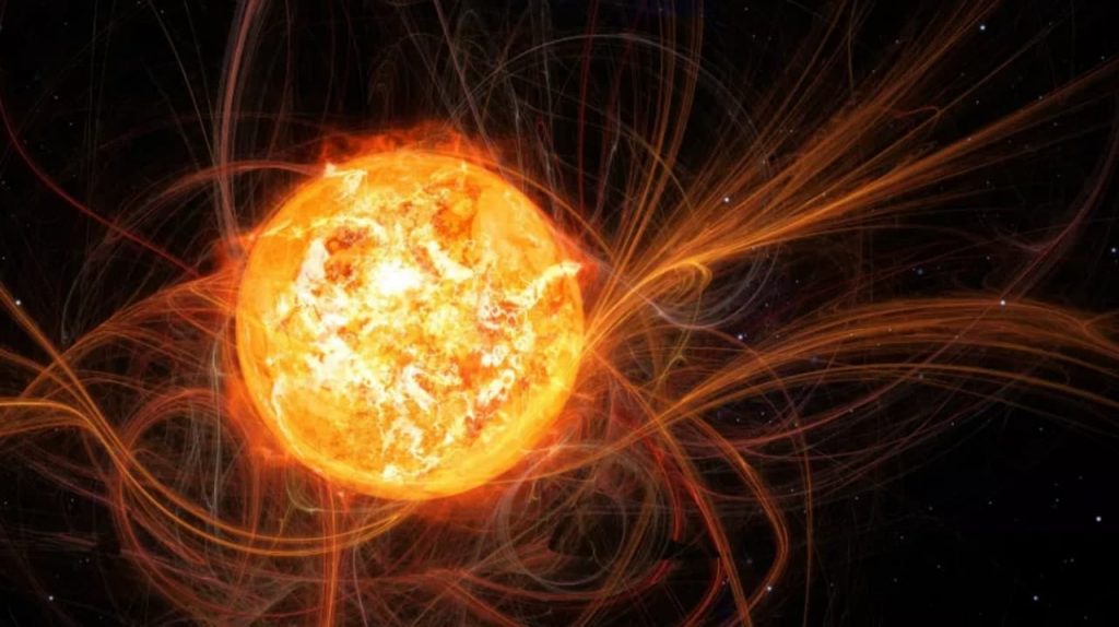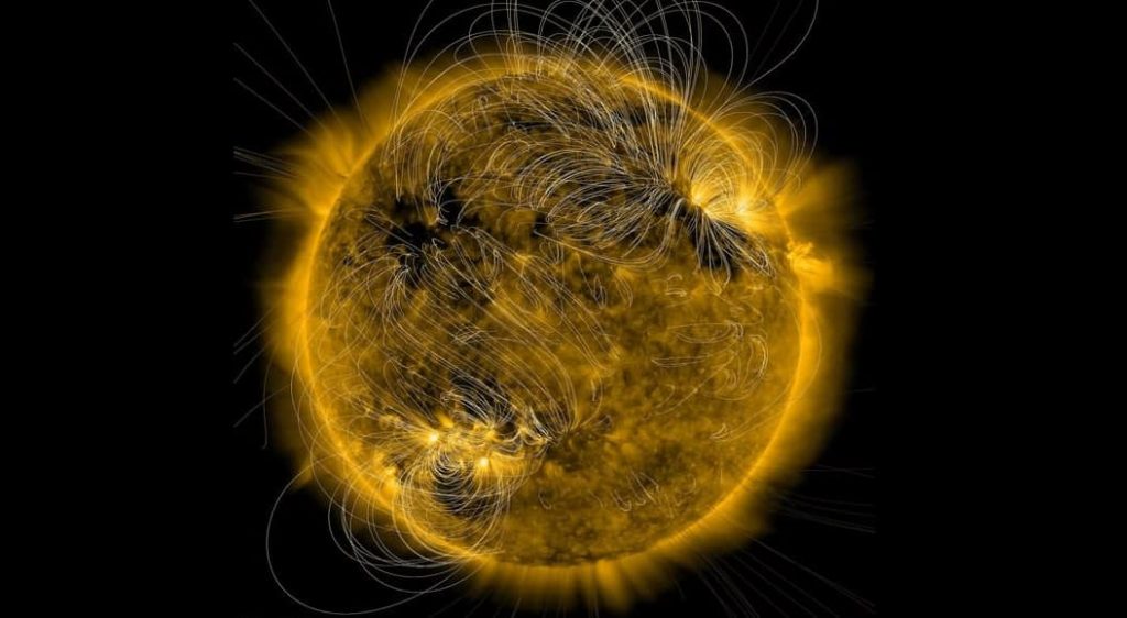 ដូចផែនដីដែលយើងកំពុងជ្រកកោននេះដែរ ព្រះអាទិត្យក៏មានដែនម៉ាញេទិចដែរ។ យើងអាចស្រមៃមើលដែនម៉ាញេទិច ជាខ្សែឆ្វាត់ឆ្វែងដែលយើងមើលមិនឃើញ តភ្ជាប់រវាងប៉ូលខាងជើង និងប៉ូលខាងត្បូងនៃព្រះអាទិត្យ ឬភពផែនដី។
