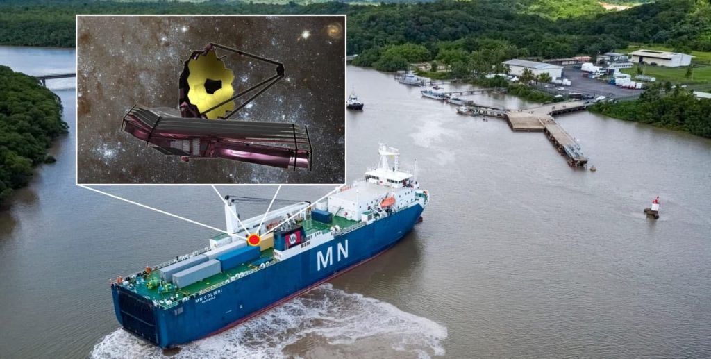 កប៉ាល់ឈ្មោះ MN Colibri ដែលដឹកជញ្ជូនកែវយឺតអវកាស James Webb របស់អង្គការ NASA បានចំណាយពេលសរុប ១៦ថ្ងៃ ធ្វើដំណើរពីតំបន់ឆ្នេរ Seal Beach នៃសង្កាត់ Orange County រដ្ឋកាលីហ្វ័រញ៉ា (នៅជាប់មហាសមុទ្រប៉ាស៊ីហ្វិក) កាលពីថ្ងៃទី២៦ ខែកញ្ញា រួចឆ្លងកាត់ព្រែកជីកប៉ាណាម៉ា និងសមុទ្រការីបៀន ហើយបន្ទាប់មកទើបមកដល់ដែនដីបារាំង Guiana ស្ថិតនៅជាប់មហាសមុទ្រអាត្លង់ទិក កាលពីថ្ងៃទី១២ ខែតុលា ឆ្នាំ២០២១ (ពេលវេលានៅអាមេរិក)។ ការដឹកជញ្ជូននេះមានចម្ងាយសរុប ៩,៣០០គីឡូម៉ែត្រ។