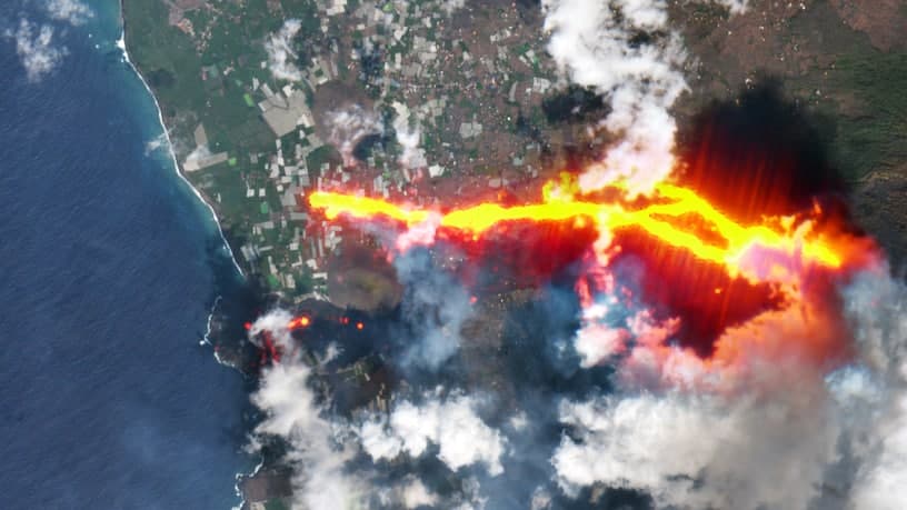 ២៖ កម្អែលភ្នំភ្លើងហូរកាត់មួយតួកោះ៖ ភ្នំភ្លើង Cumbre Vieja ដែលបានផ្ទុះកាលពីខែកញ្ញា បានបន្តហូរកម្អែលឥតឈប់ នៅក្នុងប្រជុំកោះ Canary របស់អេស្ប៉ាញ ស្ថិតនៅលើមហាសាគរអាត្លង់ទិក ក្បែរទ្វីបអាហ្វ្រិក។