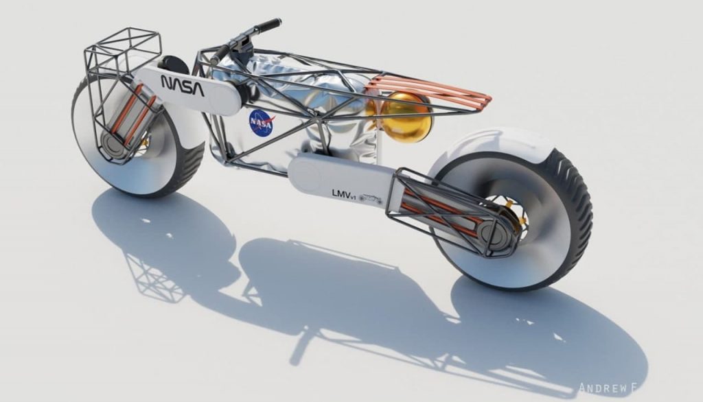 លោក Andrew Fabishevskiy បានទទួលស្គាល់ថា ការរចនាម៉ូតូឋានព្រះចន្ទខាងលើនេះ គឺបានយកលំនាំតាមយាន Lunar Rover ដែលត្រូវបានប្រើប្រាស់ក្នុងបេសកកម្ម Apollo 15 និង 17 របស់អង្គការ NASA។ រូបរាងរបស់វាគឺសាមញ្ញ ដោយបង្ហាញអំពីកង់ពីរ អាគុយ និងគ្រឿងបរិក្ខាផ្គុំមិនច្រើន ដូចម៉ូតូទូទៅលើភពផែនដីនោះឡើយ។