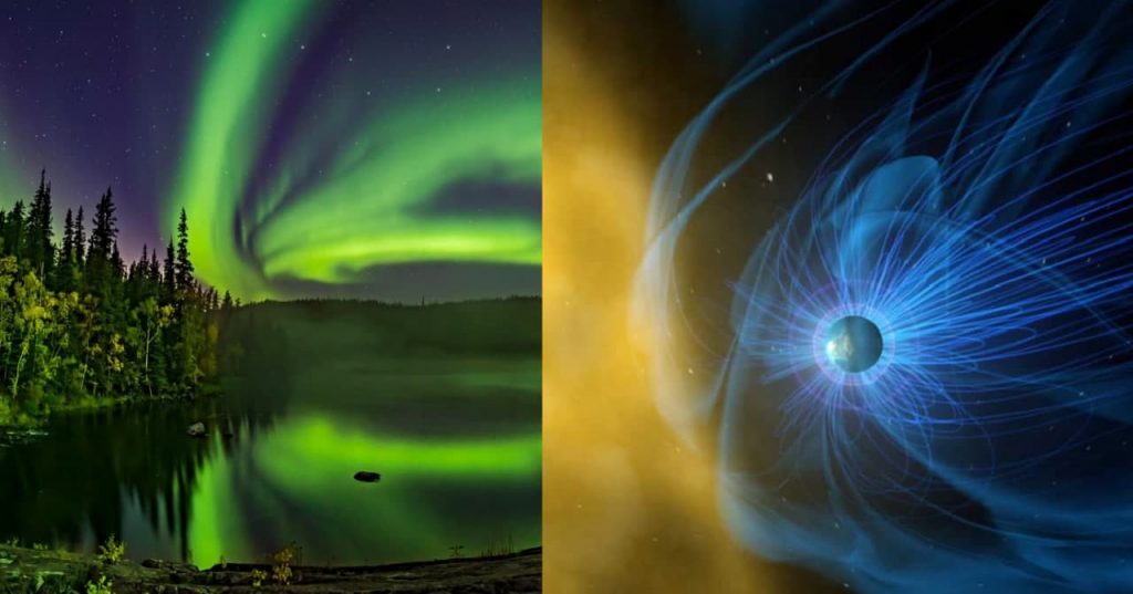 សម្រាប់ភាសាបច្ចេកទេស បាតុភូតពន្លឺ Aurora ដែលបានប្តូរទៅកើតមានឡើងនៅក្បែរតំបន់អេក្វាទ័រវិញនោះ ត្រូវបានបង្កឡើងដោយចលនារអាក់រអួល នៃដែនម៉ាញេទិចនោះគឺមានឈ្មោះថា «Laschamp event» ឬ «Laschamp excursion»។ វាគឺជាពេលដែលដែនម៉ាញេទិចអឌ្ឍគោលខាងជើង និងខាងត្បូងចុះខ្សោយ ទើបប៉ូលម៉ាញេទិចផ្អៀងមករកតំបន់កណ្តាលវិញ នោះគឺខ្សែអេក្វាទ័ររបស់ផែនដី ហើយនៅទីបំផុតពន្លឺ Aurora បានមកកកើតនៅតំបន់នោះតែម្តង។