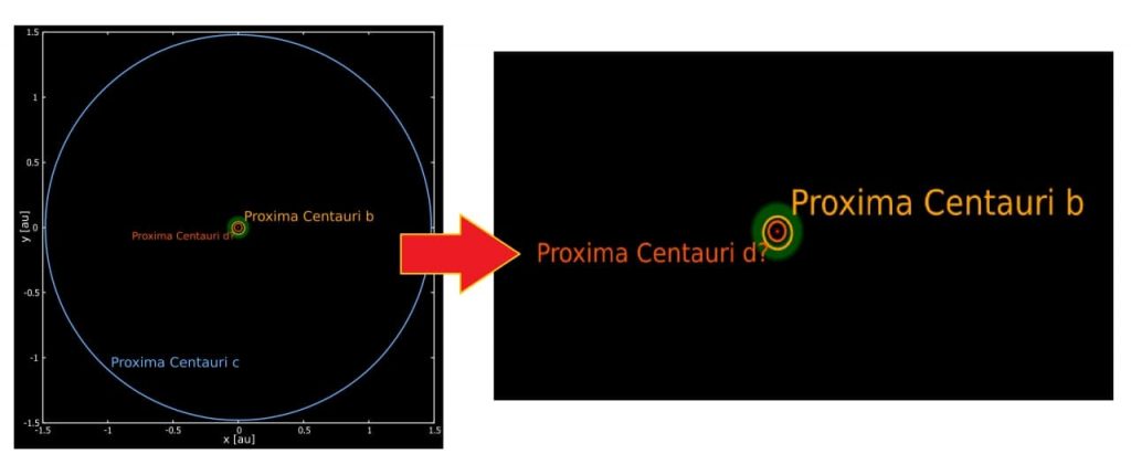 ភពដែលអាចមានវត្តមានខាងលើនេះ នឹងមានឈ្មោះថា «Proxima d» ដោយវាមានទំហំ ២៥% ធំជាងភពផែនដីរបស់យើង ហើយវានឹងក្លាយជាភពដែលស្រាលបំផុត ដែលយើងបានស្គាល់ ប្រសិនបើវត្តមានរបស់់វាត្រូវបានបញ្ជាក់ ១០០% នោះ។ (ទោះបីវាជាភពទី ៣ ដែលត្រូវរកឃើញមែន តែទីតាំងរបស់វាមិនមែនស្ថិតនៅលំដាប់លេខ ៣ ក្នុងប្រព័ន្ធរបស់វានោះឡើយ, ដោយវាស្ថិតនៅលេខរៀងទី ១ ឯណោះទេ ព្រោះអ្នកវិទ្យាសាស្ត្រទើបនឹងអង្កេតឃើញ)
