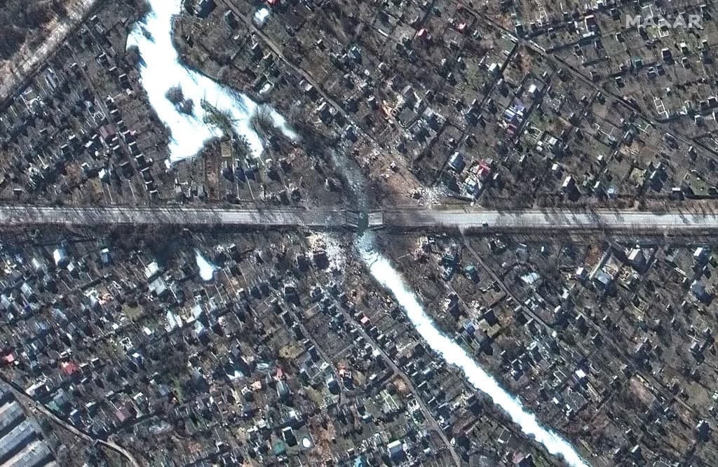 ៥៖ រូបភាពនៃស្ពានមួយនៅទីក្រុង Chernihiv របស់អ៊ុយក្រែន រងការបំផ្ទុះបំបាក់
