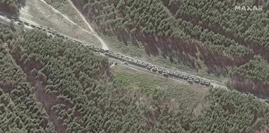 ២៖ រូបភាពនៃក្បួនយោធារុស្ស៊ីមានប្រវែងជាង ៦០គីឡូម៉ែត្រ ធ្វើដំណើរទៅវាយប្រហាររដ្ឋធានី Kyiv របស់អ៊ុយក្រែន