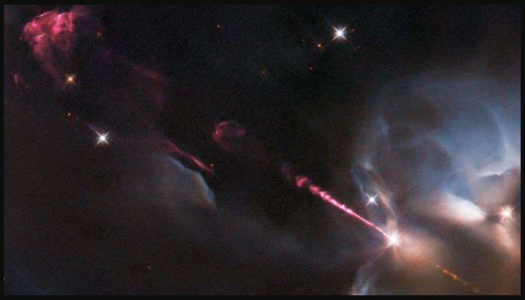 (អាមេរិក)៖ ទិដ្ឋភាពនៃកំសួលថាមពល ឬ jet ដែលប្រៀបបីដូចជាការបាញ់ចេញ កាំរស្មីឡាស៊ែរ (laser) ដ៏កញ្ជ្រោលទៅក្នុងទីអវកាស ត្រូវបានតេឡេស្កូបអវកាសវ័យជាង ៣០ឆ្នាំ «Hubble» របស់អង្គការ NASA ផ្តិតបាននៅពេលវាសម្ងំអង្កេតមើលតារាទារកមួយដួង ដែលទើបចាប់កំណើតថ្មីៗ ហើយនេះសុទ្ធសឹងតែជាមេរៀន ដើម្បីឲ្យយើងធ្វើការស្វែងយល់បន្ថែម អំពីដំណើរវិវឌ្ឍនៃព្រះអាទិត្យផ្ទាល់។