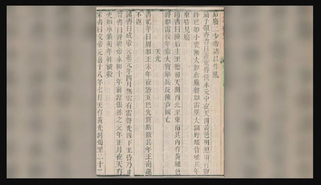 ក្រុមអ្នកស្រាវជ្រាវបានរកឃើញកំណត់ត្រាស្តីអំពីបាតុភូត Aurora ខាងលើនេះ តាមរយៈកំណត់ត្រាប្រវត្តិសាស្ត្រលើបន្ទះឬស្សី ដែលជនជាតិចិននាសម័យកាលណោះ និយមប្រើប្រាស់បំផុត ដើម្បីកត់ត្រាប្រវត្តិសាស្ត្រ និងកំណត់ហេតុនានា។