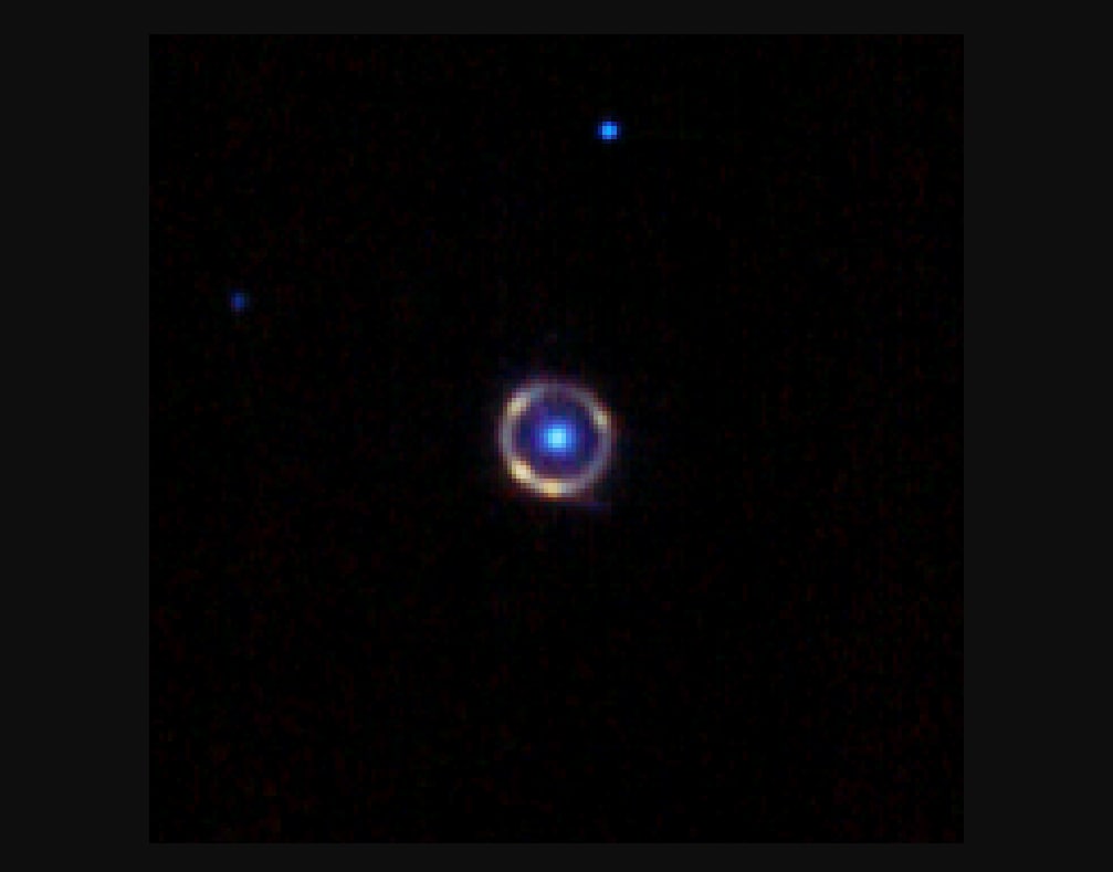 ទិដ្ឋភាពខាងលើនេះ គឺជាបាតុភូត «អាញ់ស្តាញ-រីង ឬ ចិញ្ចៀន-អាញ់ស្តាញ» (Einstein Ring) ដោយវាស្ថិតនៅចម្ងាយ ១២ពាន់លានឆ្នាំពន្លឺពីយើង (១ឆ្នាំពន្លឺ = ៩.៤៦ទ្រីលានគីឡូម៉ែត្រ)។ ការផ្តិតរូបភាពដែលស្ថិតនៅចម្ងាយឆ្ងាយ មហាសែនឆ្ងាយបែបនេះ ពិតជារឿងដ៏លំបាកបំផុត ព្រោះវាមិនមែនចេះតែមាន ការបង្ហាញចេញបែបនេះរាល់ថ្ងៃនោះឡើយ។
