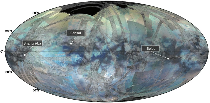 គួរបញ្ជាក់ថា កន្លែងដែល Dragonfly ត្រូវចុះចត និងស្រាវជ្រាវដំបូងនោះមានឈ្មោះថា Shangri-La ដែលជារណ្តៅយក្សមានមុខកាត់ ៨០គីឡូម៉ែត្រ។ តំបន់នេះត្រូវបានផ្តិតរូបភាពដោយយានអវកាស Cassini អំឡុងការធ្វើបេសកកម្ម នៅប្រព័ន្ធភពសៅរ៍ចាប់ពីឆ្នាំ ២០០៤ ដល់ ២០១៧។ ក្រុមអ្នកវិទ្យាសាស្ត្រនៃសាកលវិទ្យាល័យថា Cornell បានធ្វើសិក្សា និងគិតគូររកកន្លែងឲ្យ Dragonfly ចុះចតដំបូងនេះ ប្រកបដោយភាពហ្មត់ចត់បំផុត។