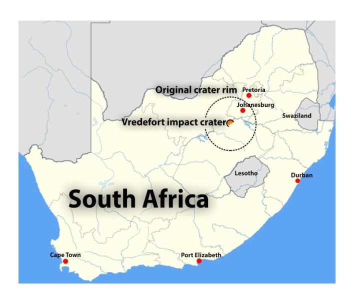 គួរបញ្ជាក់តាមលទ្ធផលសិក្សាចាស់ឲ្យដឹងថា Vredefort crater អាចមានទំហំដើមត្រឹមតែ ១៧២គីឡូម៉ែត្រប៉ុណ្ណោះនៃអង្កត់ផ្ចិត ហើយវាត្រូវបានបង្កឡើងដោយអាចម៍ផ្កាយ ដែលអាចមានអង្កត់ផ្ចិត ១៥ គីឡូម៉ែត្រ ដែលបានបុកចំភពផែនដីក្នុងល្បឿន ៥៣,៩០០ គីឡូម៉ែត្រ/ម៉ោង។ សម្រាប់លទ្ធផលសិក្សាថ្មីវិញគឺ Vredefort អាចមានមុខកាត់រហូតដល់ ២៨០ គីឡូម៉ែត្រ និងអាចត្រូវបានបង្កឡើងដោយ អាចម៍ផ្កាយមានមុខកាត់ចាប់ពី ២០-២៥ គីឡូម៉ែត្រឯណោះ ព្រមទាំងបានបុកភពផែនដីក្នុងល្បឿនចាប់ពី ៧២,០០០-៩០,០០០ គីឡូម៉ែត្រ/ម៉ោង។