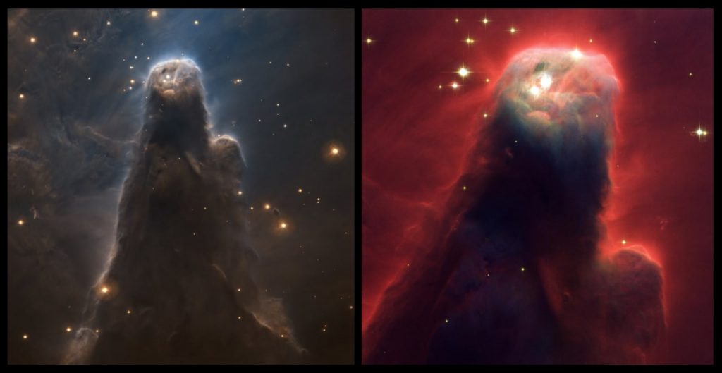 តួយ៉ាងរូបភាពដ៏អស្ចារ្យមួយសន្លឹកនេះ គឺត្រូវបានថតដោយបណ្តាញតេឡេស្កូបយក្ស VLT (Very Large Telescope) របស់ ESO និងត្រូវបានជ្រើសរើសយកមក ដើម្បីអបអរខួប ៦០ឆ្នាំនៃអង្គការនេះ។ វាគឺជាបណ្តុំពពកធូលី-ឧស្ម័ន (ដែលយើងតែងហៅថា នេប៊ូឡា – Nebula នោះ) មួយមានឈ្មោះថា ខូន (Cone Nebula) ដែលមានកម្ពស់ ២.៥ឆ្នាំពន្លឺឯណោះ។