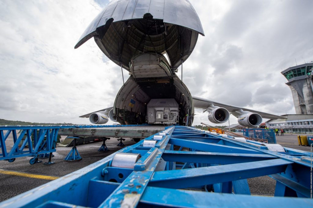 (បរទេស)៖ យានអវកាស JUICE របស់អង្គការអវកាសអឺរ៉ុប ESA ដែលមានគោលដៅទៅសិក្សាប្រព័ន្ធភពព្រហស្បតិ៍ (Jupiter) នោះ បានទៅដល់ដែនដីបារាំង-ហ្គាយ៉ាណា (French Guiana) ហើយ នៅថ្ងៃទី០៩ ខែកុម្ភៈ ឆ្នាំ២០២៣ (ម៉ោងនៅតំបន់អាមេរិកខាងត្បូង) តាមរយៈយន្តហោះដឹកទំនិញ Antonov An-124-100 របស់ក្រុមហ៊ុនដឹកជញ្ជូនអេមីរ៉ាត់អារ៉ាប់រួម។