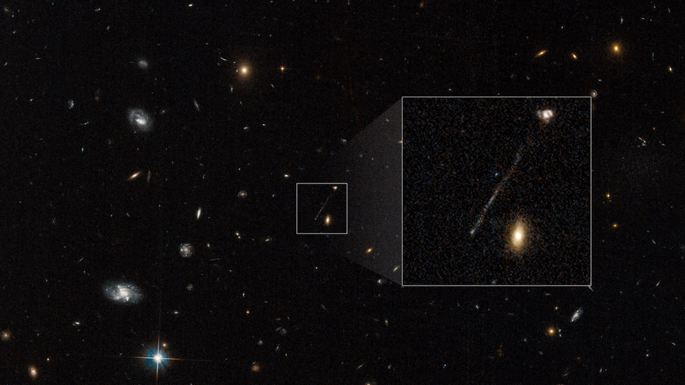 (បរទេស)៖ តេឡេស្កូបអវកាស Hubble របស់អង្គការ NASA និង ESA ទើបតែបានប្រទះឃើញ ប្រហោងខ្មៅ (Black Hole) ចម្លែកថ្មីមួយ ដោយវាហាក់បីដូចជាកំពុងរត់កាត់ទីអវកាសក្នុងល្បឿនយ៉ាងលឿន ហើយមានតារាក្មេងៗជាច្រើនរត់ប្រដេញតាមពីក្រោយ។ ប្រសិនបើលោកអ្នក នឹកមិនឃើញអំពីទិដ្ឋភាពនោះ ក្រុមអ្នកវិទ្យាសាស្ត្របានធ្វើការប្រៀបធៀបទិដ្ឋភាព ទាំងមូលទៅនឹងនាវាមួយគ្រឿងដែលកំពុងបើកបរលើផ្ទៃសមុទ្រ ហើយនៅកន្ទុយនាវានោះមាន ដានលើផ្ទៃទឹកដែលវាបានបើកកាត់ បណ្តាក់តាមពីក្រោយយ៉ាងវែងអន្លាយនោះឯង ។