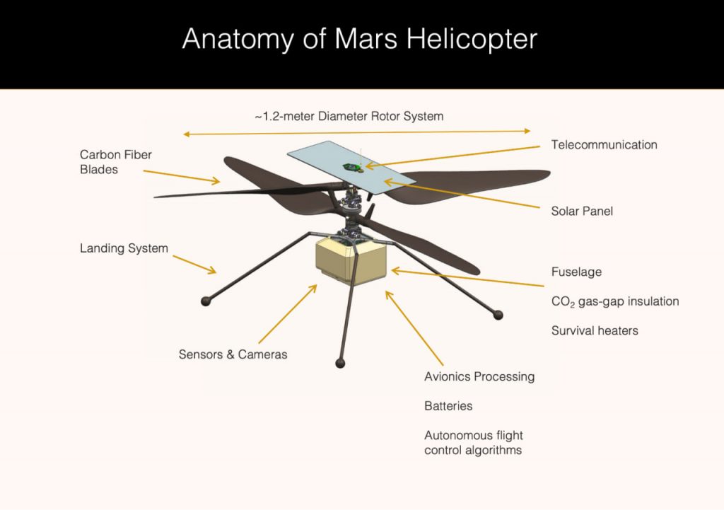 គួរបញ្ជាក់ថា ការអភិវឌ្ឍគ្រឿងយន្ត ដែលអាចហោះលើផ្ទៃភពអង្គារនោះ គឺមិនមែនជារឿងងាយៗនោះឡើយ។ ក្រៅពីបរិយាកាសដ៏ស្តើង និងកម្លាំងទំនាញខ្សោយជាងផែនដី (កម្លាំងទំនាញភពអង្គារស្មើតែ ០.៣៧ដង នៃកម្លាំងទំនាញផែនដីប៉ុណ្ណោះ) រណ្តៅ Jezero របស់ភពអង្គារ ក៏ពោពេញដោយទីទួល និងជ្រលងភ្នំលំបាកៗ ដែលតម្រូវឲ្យកូនឧទ្ធម្ភាគចក្រថ្មីៗនោះ ត្រូវមាននូវប្រព័ន្ធអង្អុលទិសដៅថ្មី ប្រសើរជាងមុន (navigation system) ដើម្បីទប់ទល់នឹងតំបន់ទីទួលលំបាក ព្រមទាំងការធានាថា ទោះបីហោះទៅឆ្ងាយរាប់គីឡូម៉ែត្រពីកន្លែងដើម ក៏វានៅតែអាចមករកកន្លែងដើមឃើញវិញ និងប្រព័ន្ធបញ្ជាការចុះចតដោយខ្លួនឯងថ្មី (mitigation capability) ប្រសិនបើវាដឹងខ្លួនថា កំពុងស្ថិតនៅតំបន់មានហានិភ័យខ្ពស់។