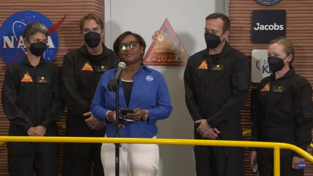 ក្រុមអ្នកវិទ្យាសាស្ត្រទាំង ៤រូបនោះមានដូចជា លោកស្រី Kelly Haston (ជាអ្នកវិទ្យាសាស្ត្រ), លោក Ross Brockwell (ជាវិស្វករ), លោក Nathan Jones (ជាប្រធានការិយាល័យវេជ្ជសាស្ត្រ) និងលោកស្រី Anca Selariu (ជាអ្នកជំនាញផ្នែកជីវសាស្ត្រ និងមីក្រូសាស្ត្រ) កំពុងស្ថិតក្នុងបេសកកម្មពិសោធន៍ Crew Health and Performance Exploration Analog Mission 1 (CHAPEA Mission 1)។ CHAPEA Mission 1 នេះផ្តោតសំខាន់លើការតាមដានអំពី លក្ខខណ្ឌសុខភាព និងការពិសោធន៍នានាតាមបែបវិទ្យាសាស្ត្រ នៅក្នុងបរិស្ថានដែលត្រូវបានរៀបចំឡើង ឲ្យស្រដៀងនឹងនៅលើភពព្រះអង្គារ ជាពិសេសគឺរយៈពេលជាង ១ឆ្នាំ នៃការស៊ូទ្រាំស្នាក់នៅដែលមានរយៈពេល «៣៧៨ថ្ងៃ» នៅក្នុងទីឋាននោះ ដោយមិនអាចស្គាល់ភពផែនដី។