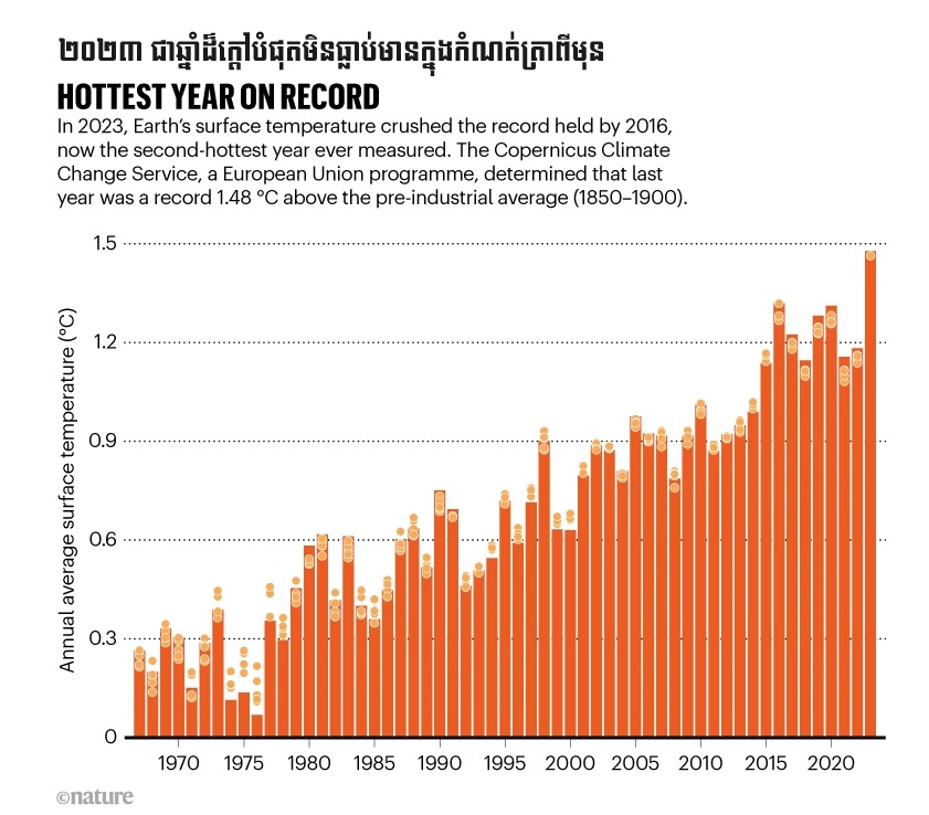ប្រភព៖ NATURE/DW/NOAA/WMO (ថ្ងៃពុធ ទី១៧ ខែមករា ឆ្នាំ២០២៤)