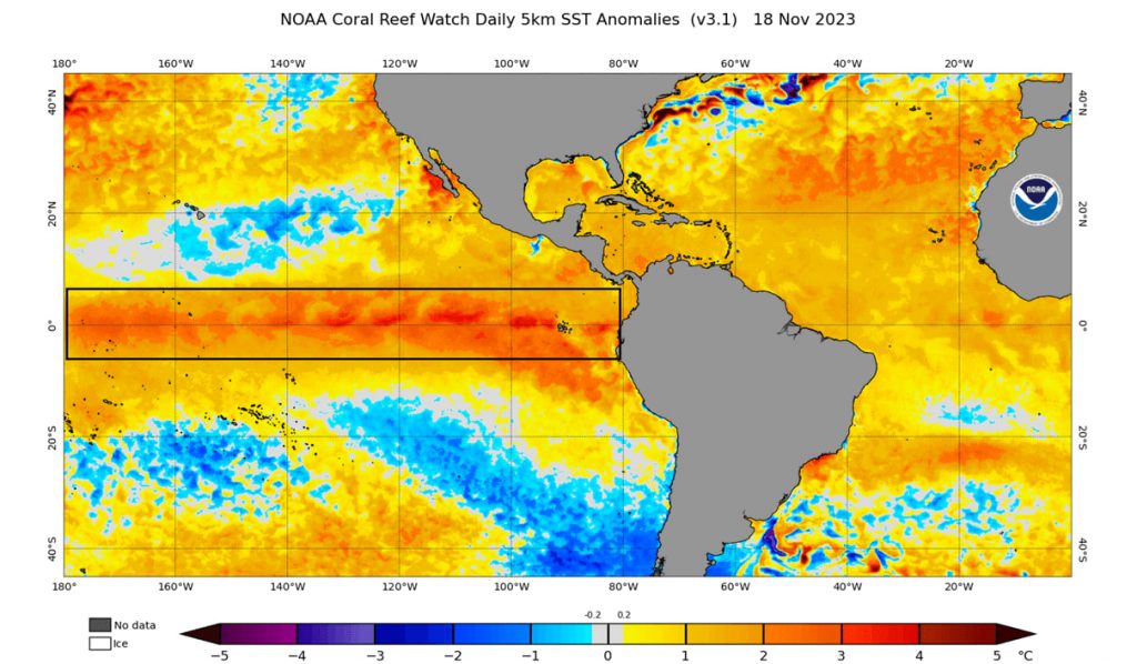 សីតុណ្ហភាពសកលក្នុងខែមករា ឆ្នាំ២០២៤នេះ ជាពិសេសនៅក្នុងមហាសមុទ្រ គឺខ្ពស់ជាងកម្រិតមធ្យម សម្រាប់ឆ្នាំទូទៅរួចជាស្រេចទៅហើយ។ លំនាំនៃអាកាសធាតុ បណ្តាលមកពីបាតុភូត អ៊ែល នីញ៉ូ (El Niño) នៅតែកំពុងបន្ត ហើយក្នុងនោះ ចរន្តទឹកក្តៅដែលចល័តទៅកាន់ ភាគខាងកើតមហាសមុទ្រសមុទ្រប៉ាស៊ីហ្វិក នៅត្រង់តំបន់ត្រូពិចនោះ ក៏កំពុងឈានចូលឆ្នាំទី ២ របស់វាផងដែរ ដែលជាធម្មតាបាតុភូតបែបនេះ គឺជាការជំរុញការកើនឡើងកំដៅផែនដី។