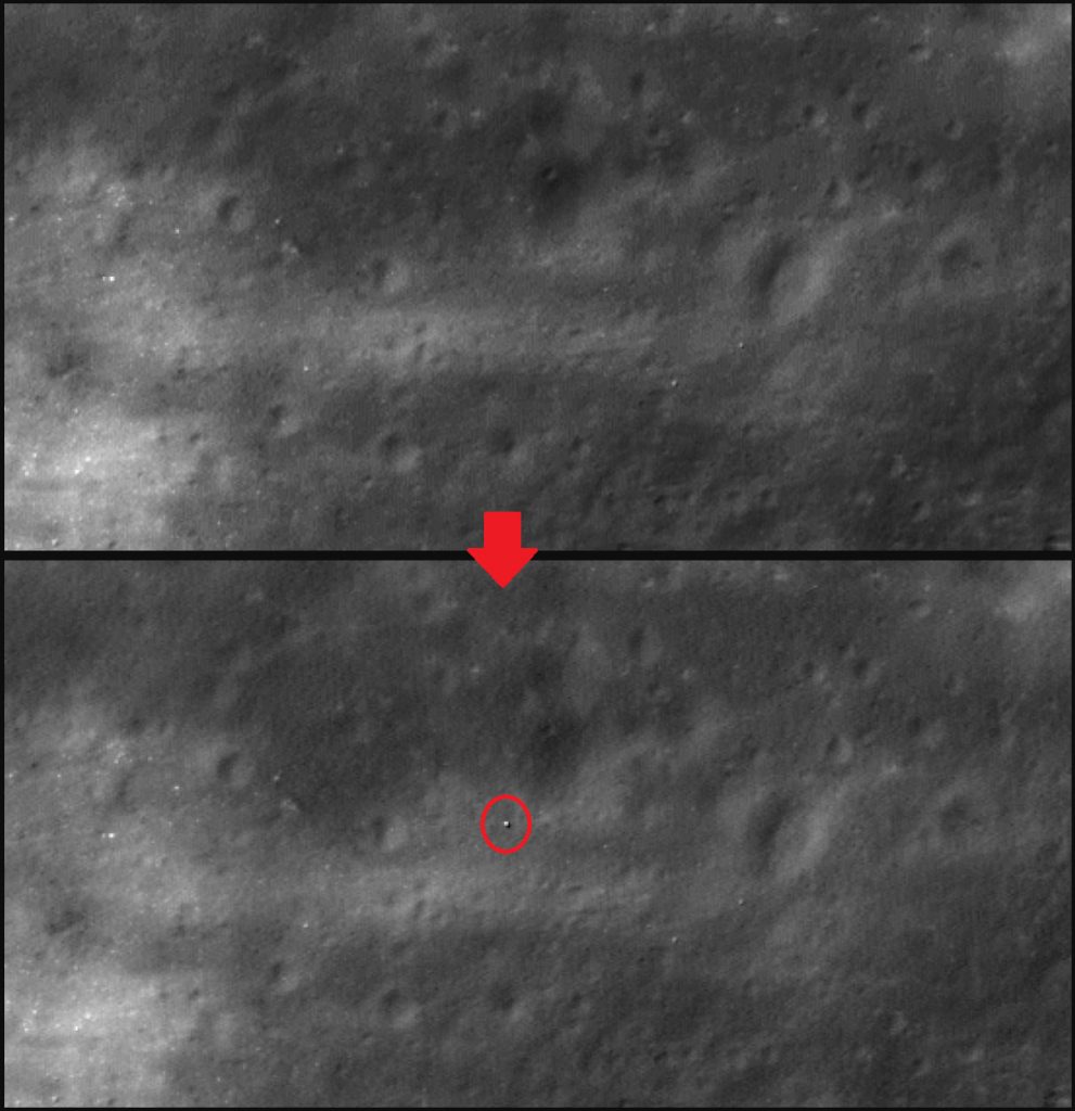 យានជប៉ុន SLIM ដែលជាប្រភេទ Lander ខាងលើនេះ បានចុះចតក្នុងរណ្តៅមួយឈ្មោះ Shioli Crater ស្ថិតនៅលើផ្នែករបស់ព្រះចន្ទដែលបែរមករកផែនដីជានិច្ច (near side)។ តាមរយៈការប្រៀបធៀបរូបភាព ២ ដែលត្រូវបានថតនៅទីតាំងដូចគ្នា លើតំបន់មួយនៃផ្ទៃព្រះចន្ទទំហំស្មើនឹង ៤៤០ម៉ែត្រ (បណ្តោយរូបភាព) យើងអាចវត្តមានយាន SLIM នៅទីនោះយ៉ាងជាក់ច្បាស់។