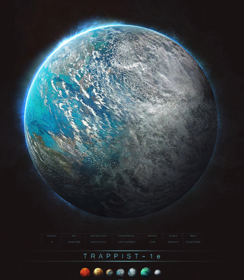 ងាកទៅកាន់ខាងដើមអត្ថបទវិញ ក្តីសង្ឃឹមអំពីភពអាចទ្រទ្រង់ជីវិតក្នុងប្រព័ន្ធផ្កាយ Trappist-1 គឺមានចំនួន ៣ ដូចជា Trappist-1 e, f និង g ហើយក្នុងចំណោមភព ៣ នេះ Trappist-1 e ស្ថិតក្នុងទីតាំងផ្អែមជាងគេ នោះគឺតំបន់ល្អបំផុតនៃ Habitable Zone របស់ផ្កាយវា។ ចំណុចល្អបំផុតនៃ Habitable Zone ឬ Goldilock Zone នេះមានន័យថា ជាទីតាំំងដ៏សមរម្យបំផុត ដែលអាចឲ្យ Trappist-1 e បង្កើតបរិយាកាសក្រាស់ និងមានទឹករាវស្រោបពេញផ្ទៃភព ដែលជាបរិស្ថានស្វាគមន៍ដល់ជីវិតដូចនឹងផែនដី។