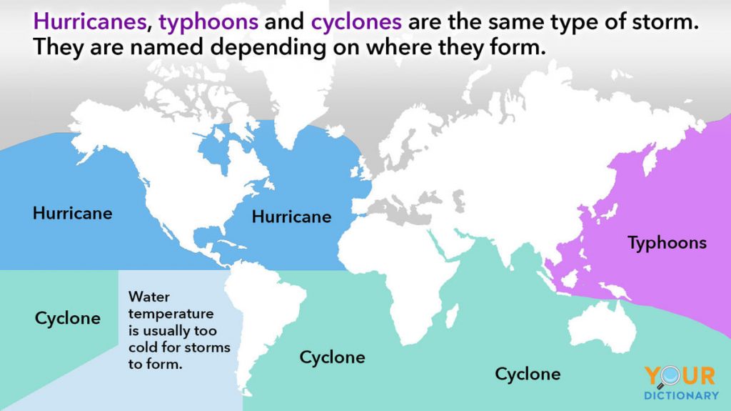 តាមពិតទៅព្យុះ ហឺរីខិន (Hurricane), ទីហ្វុង (Typhoon), និងស៊ីក្លូន (Cyclone) មិនមានអ្វីដែលខុសប្លែកពីគ្នានោះទេ ដោយពួកវាសុទ្ធតែស្ថិតនៅក្នុងជំពូកព្យុះកំណាច គ្រាន់តែពួកវាកកើតឡើងនៅតំបន់ខុសៗគ្នា នៃមហាសមុទ្រនានារបស់ភពផែនដី ទើបមានឈ្មោះហៅខុសគ្នា (ដូចក្នុងរូបភាពនេះបានបញ្ជាក់)។ ដោយឡែកព្យុះត្រូពិក (Tropic) វិញគឺខ្សោយជាងព្យុះទាំង ៣ នេះ។