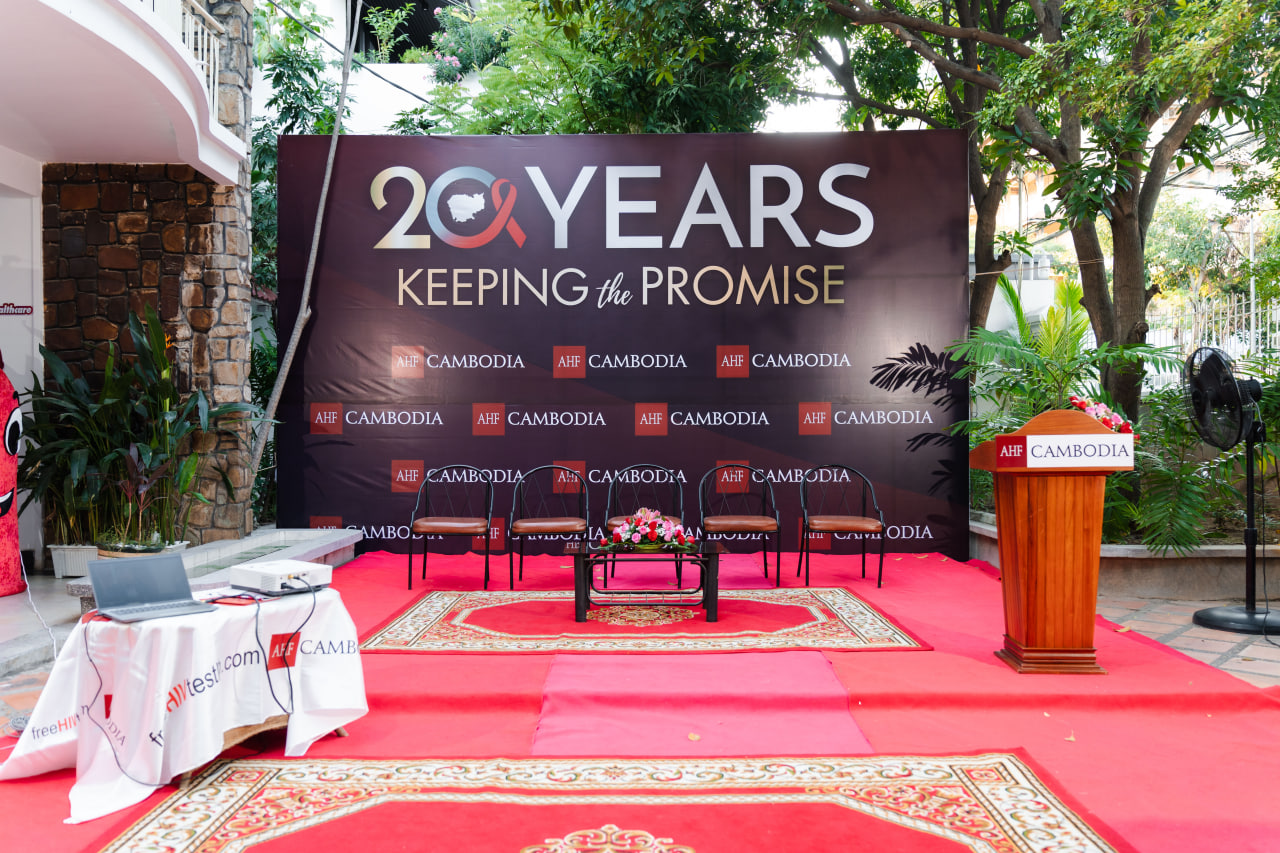 នៅកម្ពុជា អង្គការមូលនិធិថែទាំសុខភាពអ្នកជំងឺអេដស៍កម្ពុជា មានកិត្តិយស ប្រកាសពីព្រឹត្តិការណ៍ដ៏សំខាន់នេះជាមួយ សមិទ្ធផលដ៏ធំធេង ខួបលើកទី២០ឆ្នាំ នៃការចូលរួមចំណែករបស់ AHF កម្ពុជា ចំពោះការឆ្លើយតបនឹងមេរោគអេដស៍ថ្នាក់ជាតិ ដែលចាប់ពីគ្លីនិកដំបូងរបស់ខ្លួនក្នុងឆ្នាំ ២០០៥ រហូតដល់ការក្លាយជាអ្នកដឹកនាំក្នុងឆ្លើយតបនឹងមេរោគអេដស៍។ ដែលបច្ចុប្បន្ននេះមានរួមកម្មវិធីបង្ការមេរោគអេដស៍ការព្យាបាល និងថែទាំ កម្មវិធី អាហារសុខភាព ក្មេងស្រី និងផ្សេងៗរួមមានការចូលរួមដើម្បីការសង្គ្រោះជីវិតមនុស្សប្រមាណ ៥២,១៦២នាក់ នៅក្នុង ៤២ទីតាំង នៃ ១៩រាជធានី-ខេត្តនៃព្រះរាជាណាចក្រកម្ពុជា ។