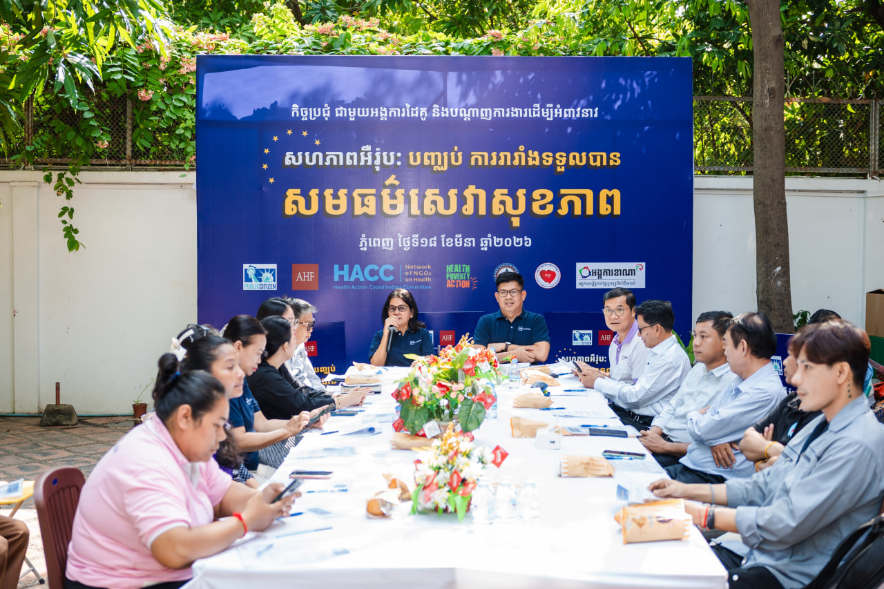 ការអំពាវនាវនេះបានធ្វើឡើងនាព្រឹកថ្ងៃទី១៨ ខែមីនា ឆ្នាំ២០២៦នេះ នៅក្នុងកិច្ចប្រជុំជាមួយអង្គការដៃគូ និងបណ្តាញការងាររបស់អង្គការនៅកម្ពុជា ដើម្បីឱ្យសហភាពអឺរុប (EU): បញ្ឈប់ការរារាំងទទួលបានសមធម៌សេវាសុខភាព ដែលកិច្ចប្រជុំនេះបានធ្វើឡើងក្រោមវត្តមានលោកវេជ្ជ ចន ផាន់ណា ប្រធានគ្រប់គ្រងកម្មវិធីប្រចាំប្រទេស អង្គការមូលនិធិថែទាំសុខភាពអ្នកជំងឺអេដស៍កម្ពុជា។